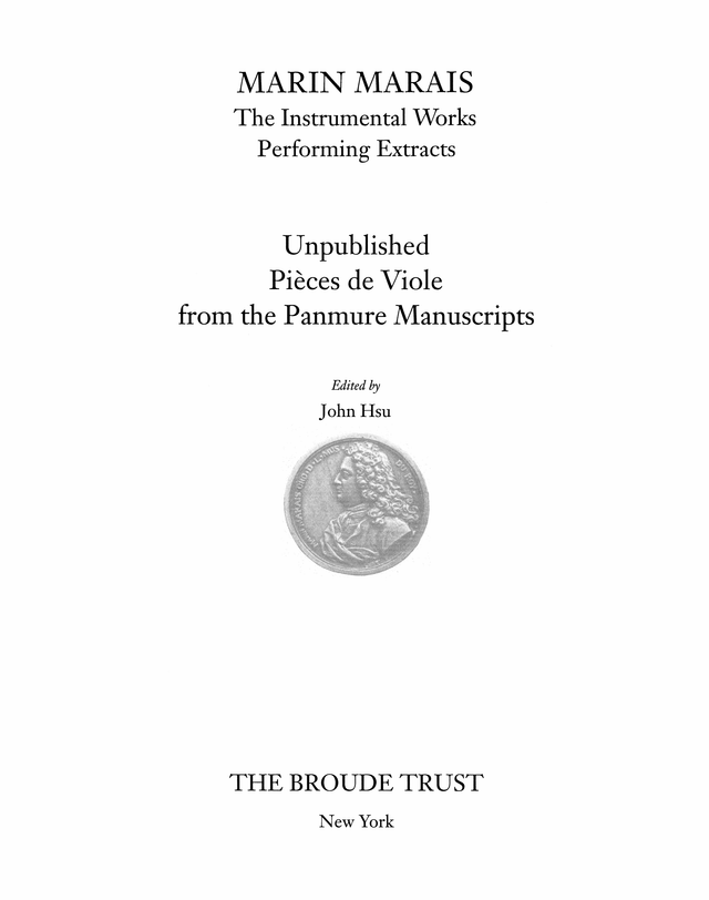 This edition presents the pièces de viole uniquely preserved in the Panmure Manuscripts, reproduced from Marin Marais: The Instrumental Works, 7, pp. 87–135.