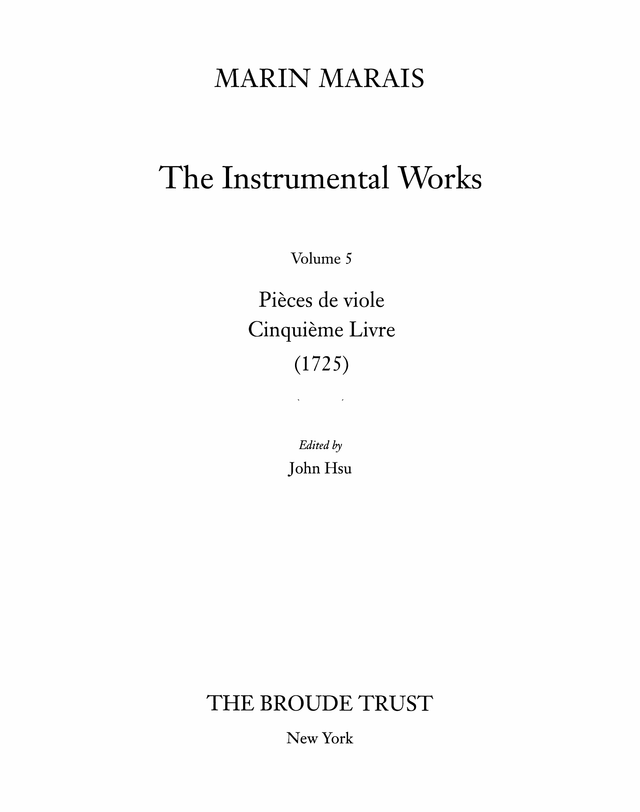 Marais: Pièces de viole, Cinquième Livre (1725)